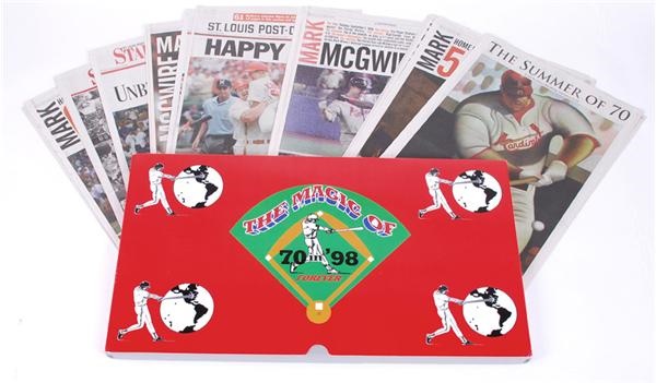 In 1998 the nation was captivated by the race to break Roger Maris' single season home run record. This boxed set of newspapers, entitled "The Magic of 70 in '98 forever", contain all the McGwire news from the St. Louis Post Dispatch. It perfectly captures Mark McGwire's road to 70 home runs that special season.