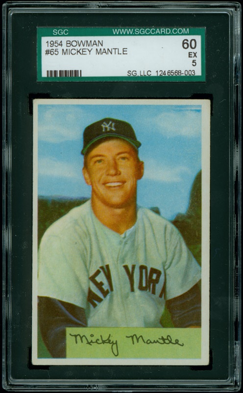 The Mick is featured here by way of his 1954 Bowman #65 baseball card. It is rated 60 EX 5 by SGC.