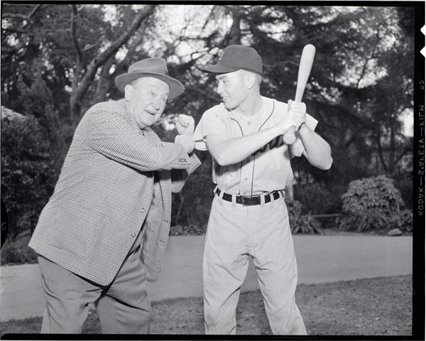 Negatives (6) of legend Ty Cobb giving hitting advice to Jim Small of the Detroit Tigers in 1957.