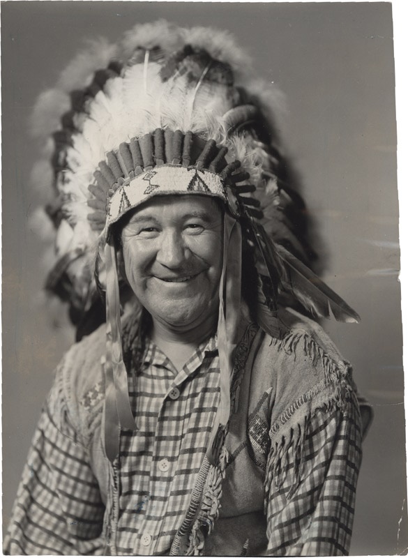 Thorpe as he appeared in a 1932 movie. Studio promotional photo dated March 4, 1932 on the verso. 7 x 9.5''. VG-EX.