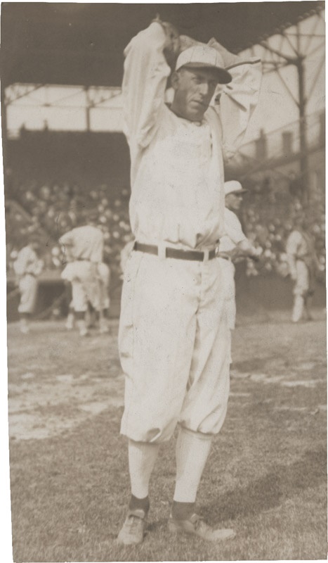 Eddie Plank was an HOF pitcher and played the majority of his career with the Philadelphia A's. He was a member of two World Championship A's teams in 1911 and 1913. In 1915, when this 5 1/4" x 9 1/4" photo was shot, Plank played for the St. Louis Terriers of the Federal League and won 21 games. Photo has yellowed over the years but is still in VG-EX condition.