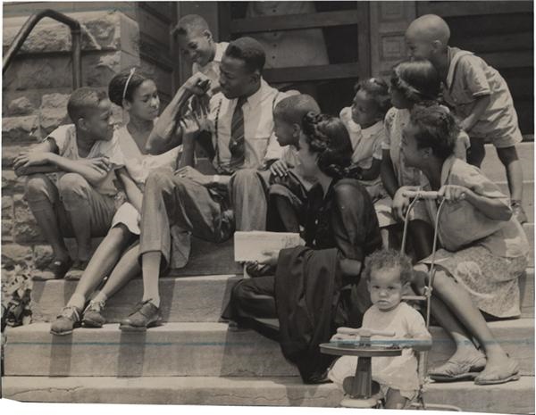 Satch flexes his muscles for his fans. Dated June 30, 1941 on the verso. 6.5 x 8.5''. Excellent.