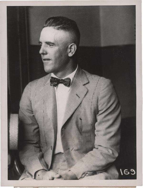 Eddie Cicotte as he appears before Judge Hugo Friend in Chicago. He is accused of betraying the sporting public. Caption sheet on the verso. 7 x 9''. EX-MT.