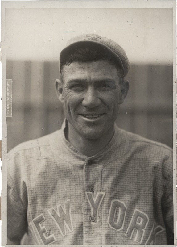 Awesome image of this popular early 20th century player. They called him "Laughing Larry" as evident by this image. 5 x 7''. Caption sheet attached to the verso. EX/EX+.