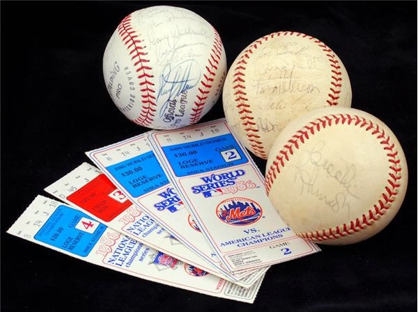 Interesting lot that Includes (3) signed baseballs and (5) ticket stubs. Baseballs include: Official National League (Cronin)