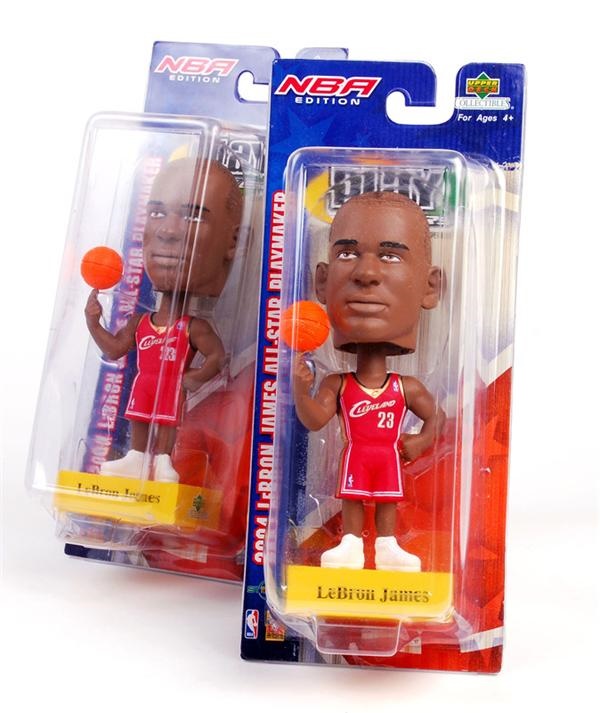 Produced by Upper Deck in 2004. This lot features only the error version that identified James as a 2004 All-Star Playmaker. Each doll stands 6.5'' tall and is housed in the original package. Because of the size/weight of this lot, shipping will be substantial. It is also available for pickup in New Jersey.
