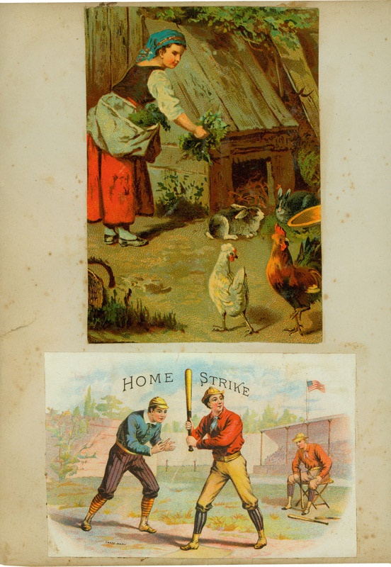 Rare colorful Cigar Box label for "Home Strike" with batter, catcher and player graphics. 4.5 x 6.5'' and affixed to a scrapbook page. VG-EX.