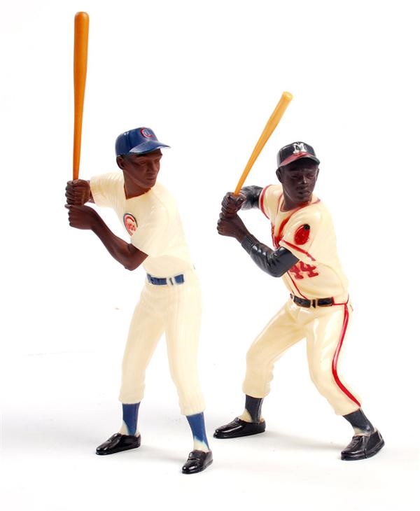Baseball Hall of Famers and members of the elite 500 HR club, Hank Aaron and Ernie Banks, are the subject of these (2) original Hartland statues. In amazing condition, both have original bat and near-perfect paint. Aaron uniform is cream, while Banks' is off-white.