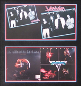 "Jump" at the chance to purchase this baby. An alternate LP cover proof mounted with the final version of self-titled Van Halen. The reputed story is that David Lee Roth spotted a Sex Pistols similar pose and requested the same for his cover. When this version was done, David rejected it as he thought it was too punky. Only six are known to exist. VG+.