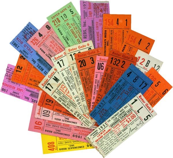 One lot of twenty-two dated Opening Day stubs, includes 1951, 1957 (2), 1959, 1960 (2), 1962 (2), 1965, 1967, 1969 (4), 1970 (2), 1972 (2), 1979, 1981(3). Grades VG to Excellent.