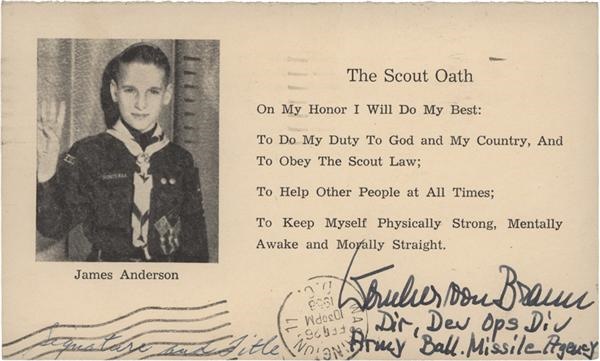 Lot # 430: German Rocket Engineer Werner Von Braun Signed Card (1958)