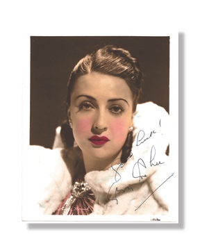 The most famous stripper of all signed this unique colorized portrait for an admirer, "Good Luck! Gypsy Rose Lee." Dated on back in recipient's hand. NRMT.