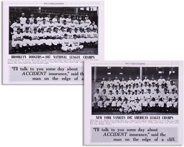 (2) Fine news photo posters featuring pro baseball's league champions for 1947: The Brooklyn Dodgers of the National League and the New York Yankees of the American League. 16 x 19" Picturegrams posters each have large team photos and are NM/MT.