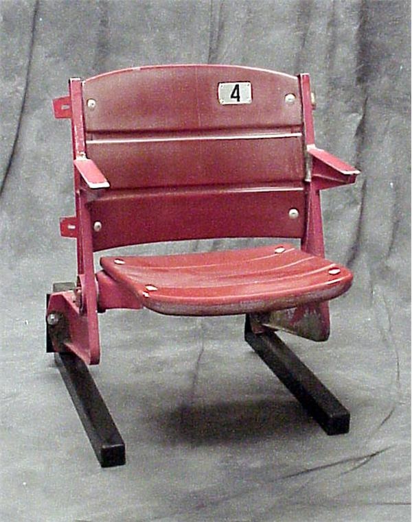 Seat #4 from Cincinnati's Riverfront Stadium, home of the Cincinnati Reds. No missing or broken pieces. Due to the size/weight of this lot shipping will be substantial. It is also available for pick-up at our Long Island office.
