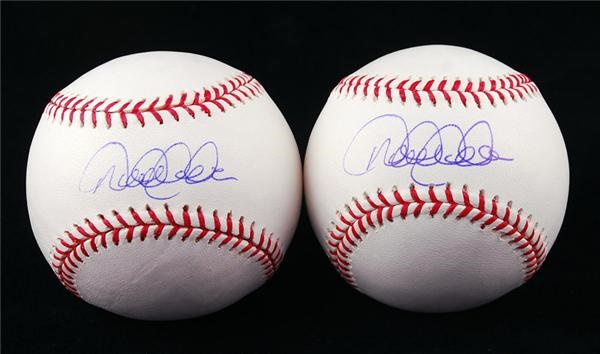 One lot of two single signed Baseballs, both signed on the sweet spot in mint blue ballpoint and each has an individual Steiner COA.