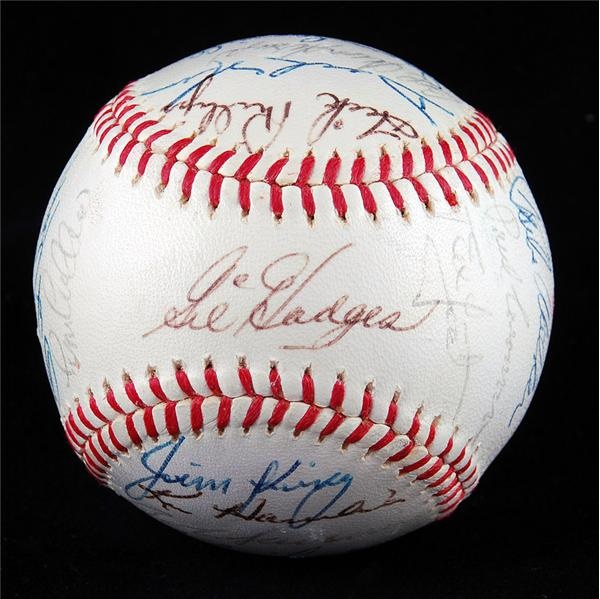 Official American League Cronin Baseball Signed by 28 members of the team including Gil Hodges, Frank Howard, and more. Signatures are in red, blue or black ballpoint. Nice white ball with signatures "7-9" on scale of 1-10. LOA JSA.