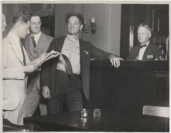 After leaving the ring, Norman Selby, know the Boxing world as Kid McCoy killed his mistress Therese Mors. All of the photos in this lot are related to the trial of McCoy. A few cover his release from San Quintin after serving 8 years until the time of his death a few years later. Interesting lot! Most 8 x 10'' or slightly smaller. VG-EX