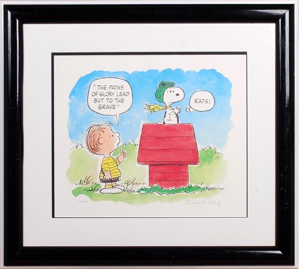 16 x 19'' lithograph signed by artist Charles Schultz in pencil on the bottom border. Limited Edition #168 of 500. Comes with matching Charles M Schultz COA. Framed to 26 x 29''.