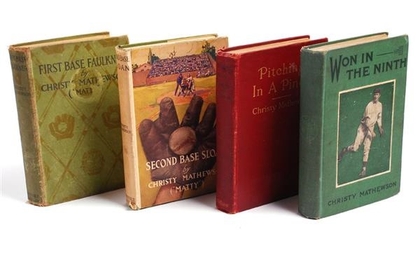 Includes 1917 Second Base Sloan with original dust jacket (Excellent), 1916 First Base Faulkner (G/VG), 1910 Won in the Ninth with picture cover (VG-EX) and 1912 Pitching in a Pinch (VG). All should be 1st editions as no higher editions are stated.
