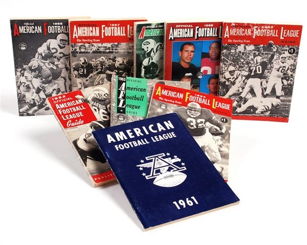 Complte run of these popular guides beginning with the 1961 guide issued by the League and 1962-1969 guides issued by The Sporting News. Guides grade EX to EX-MT.