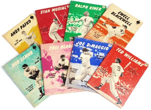 One lot of eight of these popular and scarce books. Includes Yogi Berra, Ewell Blackwell, Bob Lemon, Andy Pafko, Joe Dimaggio, Ralph Kiner, Stan Musial and Ted Williams. VG to VG+/EX.