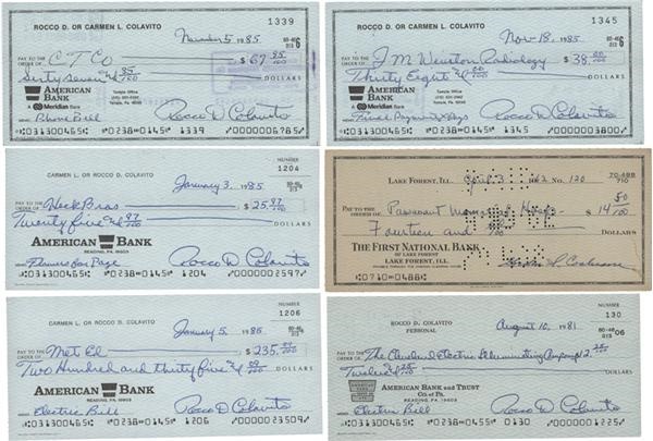 One check signed by Mickey Cochrane dated 1962 and five checks signed by Rocky Colavito and dating from 1981 or 1985. All have bold ink signatures. EX-MT.