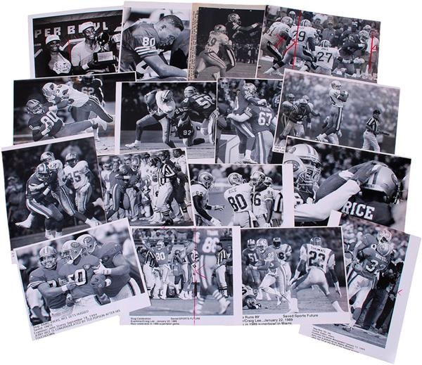 This is a really nice lot. About 90% of the photos were taken by staff photographers for the hometown SFX and are not available anyplace else. Most are vintage 1st generation prints of game action with Rice clearly visible and identified. About 8 x 10'' with a few slightly smaller or larger. EX-MT