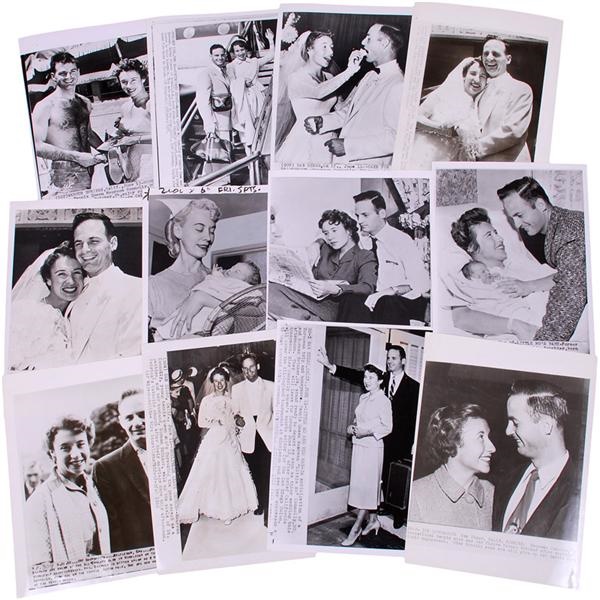 Fifteen wire photos dating from 1954-1957 picture female Tennis Champion Maureen Connolly with her husband and family. 8 x 10''. EX-MT