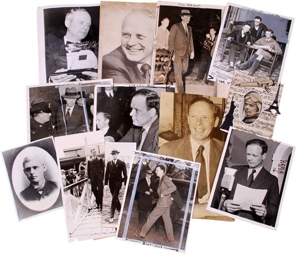 Collection of Charles Lindbergh wire photographs (47) spanning the life of one of America's most famous men. Photos range in size from 4" x 6" to 8 1/2" x 11". Conditions range from GD-EX. One AP wire photo from 1949 shows Lindbergh holding the Wright Brothers Memorial trophy, depicting the Kitty Hawk plane, which he was awarded by the National Aeronautic Association. Another photo from 1936 shows Lindbergh standing with King Edward VIII. There are several of him testifying before congressional committees in 1939 pleading his case for why America should stay out of "Europe's War". The later years of his life are represented by a wire photo taken in 1970 telling of Lindbergh's warning that our civilization could be destroyed if we do not learn to "control the fantastic forces of the various technologies our scientific knowledge has released."