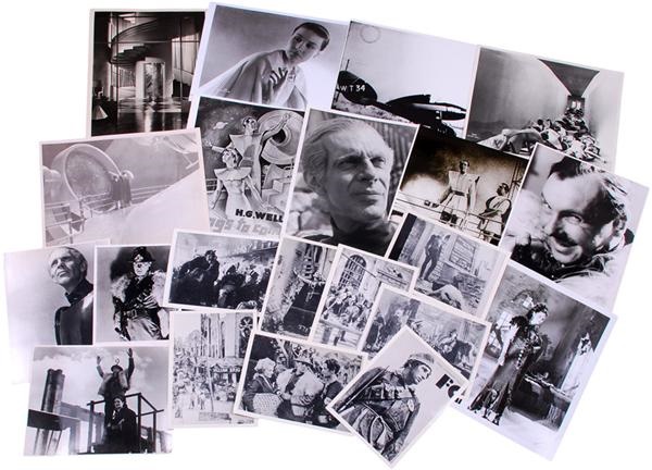 The 1935 HG Wells film, Things to Come, starring Raymond Massey, is the subject of this lot of (60) movie stills. Though not originals, there are early prints circa 1960 as well as some printed as late as the 1980's for inclusion in a movie magazine. Ranging in size from 4x5 to 8x10, the photos are overall NM/MT with a few closer to EX, but generally of exceptional quality.