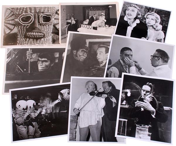 Interesting collection of (53) science fiction and monster movie photographs. Some of the images are of older movies and their production (One Glorious Day, Young Donovan's Kid), but were printed as late as the 1980s for inclusion into a movie magazine. Modern movie stills include, Young Frankenstein, Zeppelin, Vibes, Vamp and Young Einstein. The (2) vintage photos in this lot are stills from 1940's Zanzibar. The 8x10 photos range in condition from EX to MT.