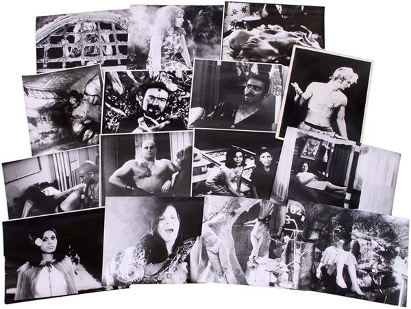 Brazilian film maker Jose Mojica Marins made his first film at the age of 12. He is best known for his disturbing undertaker character "Coffin Joe", the centerpiece of many of his films. This incredible collection of rare, original movie stills come from Mojica's second film in the Coffin Joe series, 1967's "This Night I Will Possess Your Corpse". A signed photo states their origins as a gift from scene photographer Norbert Novotny. The (73) 8x10 stills show-off Mojica's edgy style and penchant for disconcerting imagery. There was plenty of controversy surrounding the film in Brazil and it was banned in many areas due to its adult content, which included nudity. Be aware, this aforementioned content is represented well in these photos.