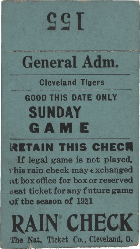 Rare 1921 Cleveland Tigers NFL football ticket stub. The Tigers only played in the 1920 and 1921 seasons. Team included well known American Indian players Jim Thorpe and Joe Guyon. This general admission Sunday game ticket is in excellent condition.