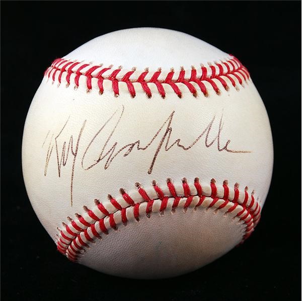 Official National League baseball (Giamatti), lightly toned, single signed on the sweet spot by Roy Campanella in mint black ball point. Includes original ticket from 1991 show signing.