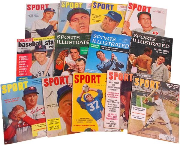 All are complete issues. Signed covers include Willie Mays (2), Doak Walker, Bob Lemon and Larry Doby. Unsigned issues include Ted Williams, Duke Snider, Ralph Kiner and Al Kaline. Other titles include Baseball Stars 1958 with Ted Williams cover and three issues of Sports Ilustrated from 1957 (Gordie Howe, Cary Middlecoff and Basilio. All signatures are mint. Magazines are Excellent or better.