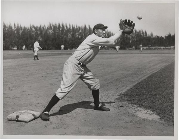 7 x 9'' vintage photograph of the Hall of Famer about to catch a thrown ball. EX-MT