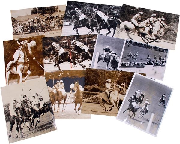 Polo is the subject of this collection of wire photos (150+) from the 1930's through the 1970's. Includes some women's teams. Photos range from 5” x 7” to 9” x 12”. Conditions are from GD with newspaper edit markings to MT. Many in the EX range and have the newspaper clippings taped to the back side. Lots of horses in action shots. Also some polo by auto, bicycle and ponies. Includes lots of trophies and awards shots.