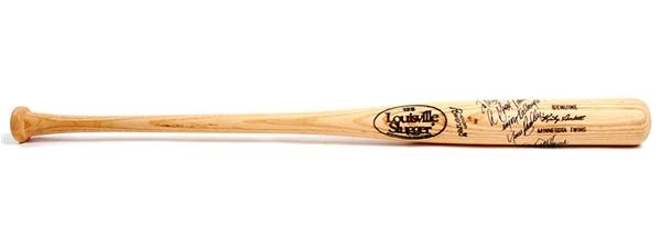 Lot # 189: Kirby Puckett Signed Minnesota Twins Game Bat to Mud Cat Grant