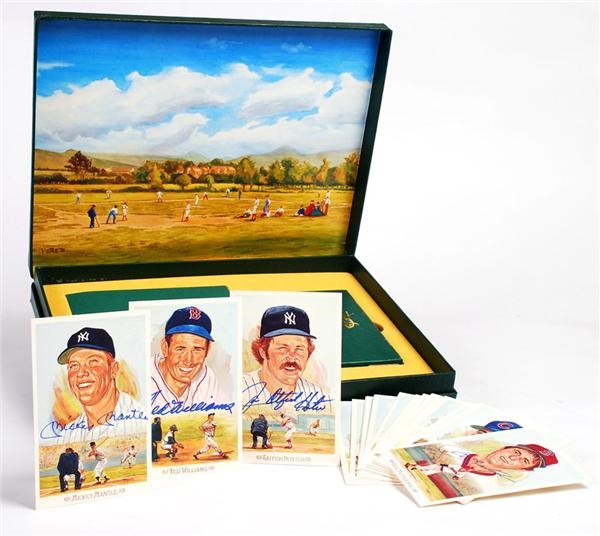 Signatures include Aparico, Banks,Bell, Berra, Chandler, Dickey, Ferrell, Gehringer, Herman, Hunter, Irvin, Kaline, Kell, Killebrew, Lemon, Leonard, Mantle, Marachal, Matthews, Mize, Reese, Brooks, Slaughter, Spahn, Stargell, Ted Williams, and Yaz. Housed in the original custom case. Mint.