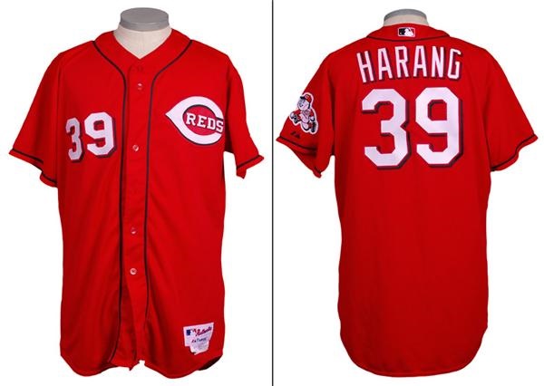 Lot # 178: 2005 Aaron Harang Cincinnati Reds Game Used Red Alternate Jersey