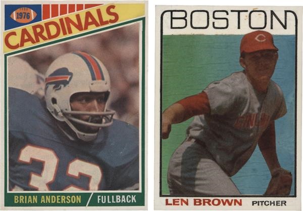 Lot of two cards from the Topps archive. Both are original one of a kind mock-up's produced in the mid-1970's as examples of possible future card designs. Includes OJ Simpson (name Brian Anderson on card) dated 1976 and Dave Concepcion (name Len Brown on card) undated. These are really interesting and great conversation pieces. EX-MT.