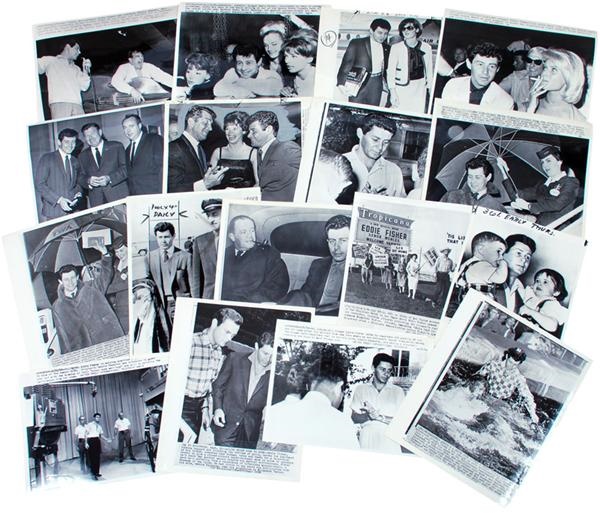 Dating from the 1950's to 1970's, Fisher is often pictured with one of his wives or a female "friend." Wives and "friends" include Debbie Reynolds, Renata Boeck, Stefanie Powers, Juliet Prowse, and more. Fisher is also pictured preparing for his show, with Dean Martin, with Shelly Winters and more. Some really good images in this lot. Overall Excellent.