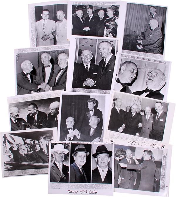 The Thirty-third president of the United States, Harry S Truman, is pictured with many of his successors in this fine collection of (24) wire photos. In the 40's, Truman is seen with predecessor Herbert Hoover, in the 50's, with his successor Dwight D. Eisenhower and in the 1960's, we find him with John F Kennedy, Lyndon B Johnson and Richard Nixon. Sized from 7x9" to 8x12", the images range in condition from VG to MT with many on the better end of that spectrum.