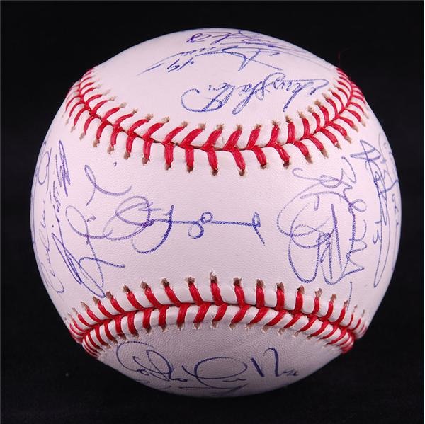 Official World Series (Selig) baseball signed by the 2006 American League Champion Detroit Tigers. Ball is bright white with gold stamping that includes the 2006 World Series logo. The (31) signatures include: Carlos Guillen, Kenny Rogers, Magglio Ordonez, Ivan Rodriguez and more.