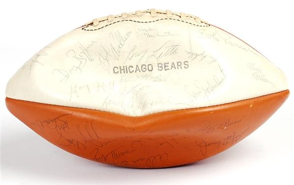 (41) Members of the 1976 Chicago Bears have signed this Wilson football stamped with their team name. Signatures include: Walter Peyton (rookie NFL season), Gary Fencik, Wally Chambers, Allen Ellis, Dan Neal and Virgil Liners. Signatures in ball point rate 6 to 9 with most on the better end of the scale. Comes with LOA from JSA.