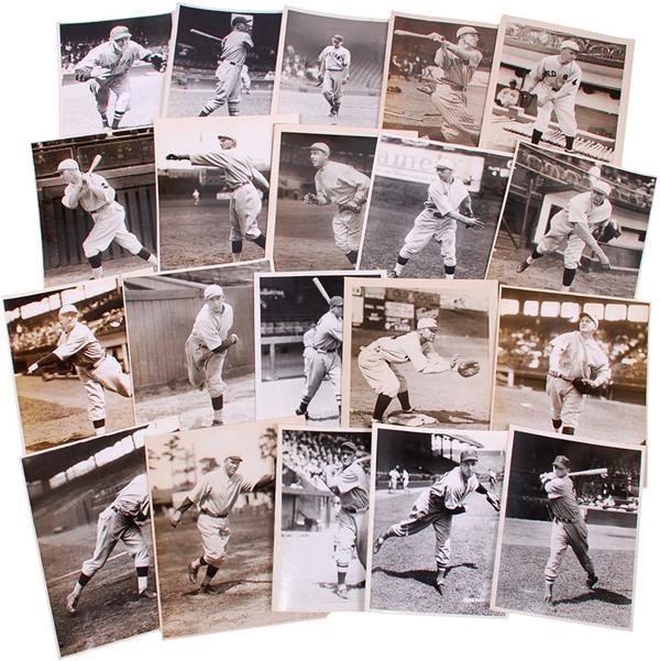 Amazing collection (105) of Red Sox photos from the 1910's through the 1940's. Sizes range from 5" x 7" to 8" x 10". They are in VG to MT condition with many EX and NRMT. Includes dozens of different early players including Walter Gerber, Bill Harris, Urbane Pickering, Bill Sweeney, Babe Dahlgren, Pinky Higgins, Bill Cissell.