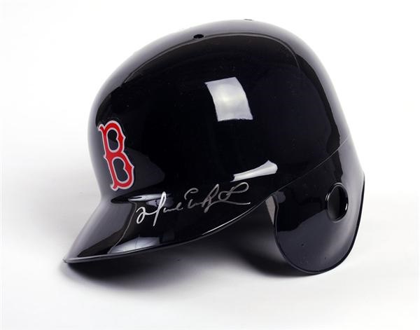 Red Sox star power-hitter, Manny Ramirez, has signed the brim of this new, Rawlings (SZ 7 3/8) Red Sox batting helmet in mint silver paint pen.