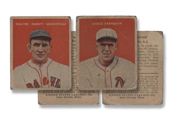 Two cards from this scarce issue produced in Boston MA. Includes #10 Walter Maranville and #29 George Earnshaw. Both are Poor to Good with corner wear and wrinkles.