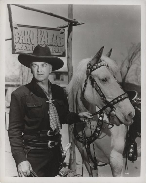 Actor William Boyd, as his famous character Hopalong Cassidy, is the subject of this original photo. It is 8" x 10" and in EX-MT condition with only a few minor creases and corner nicks. Hopalong Cassidy was a hero to a generation of American children. He is pictured with his horse Topper.