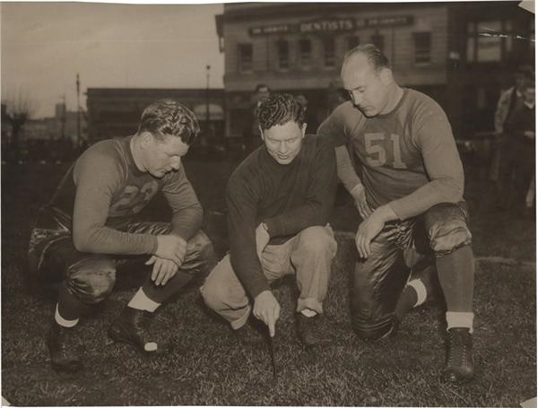 Vintage photo of Hall of Famer Curly Lambeau with fellow Green Bay Packers Players. About 6 x 8''. Any vintage Lambeau photogrpah is considered scarce. VG-EX